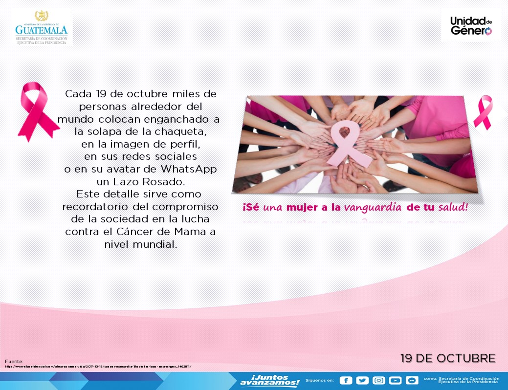 A nivel mundial se coloca un lazo rosado como recordatorio del compromiso de la Sociedad de la lucha contra el cáncer